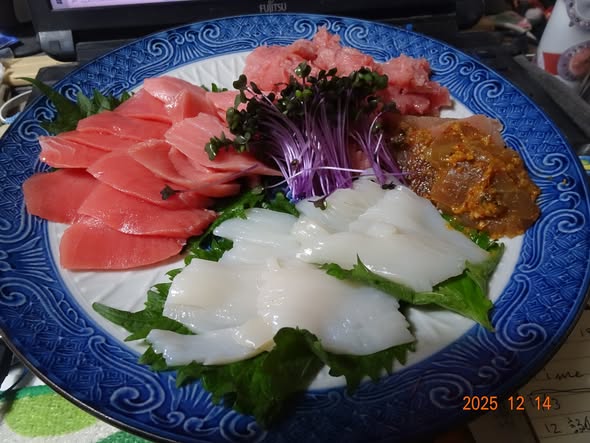 | 仙台おみやの 鮪 烏賊はストックです ハマグリで吸い物 |