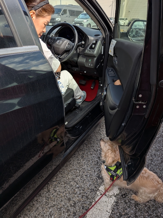 🐕 駐車場まで見送ったよ パパがエアコンの説明してた |