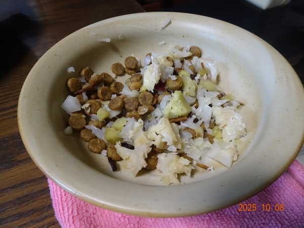 【 マシャ飯 】 納豆を数粒入れました 植物性 タンパク質だから いいでしょう 一度には食べてくれません 一応 待ってます いいとこ採りです もっと 鶏軟骨くれよ~ 投稿者: admin 1949年12月に熊本の天草に生まれ、現在は千葉県船橋市にKAMIさんと愛犬MASHA(2010.5.5生)と居住。2013年6月に完全リタイア 以来 HIMA人 FREEマン。 アラウンド7(にそろそろリーチ)老い朽ちる日を見据えて KAMIさんと 主役のマシャとともに過ごす日々を、徒然 書き留めておく。 2018.10.14記 admin のすべての投稿を表示