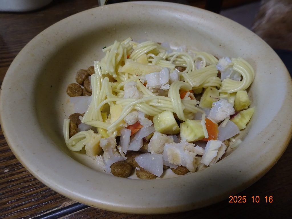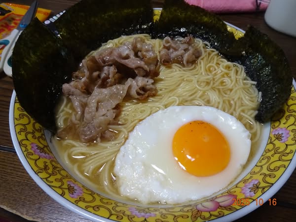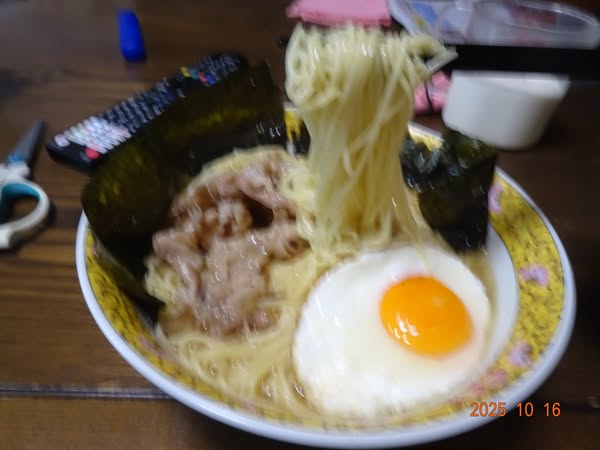 豚肉炒めと🍳 海苔をトッピング 二食分いっちゃいました |