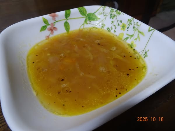・ズッパ風 スープ 玉葱の皮で出汁をとります |
