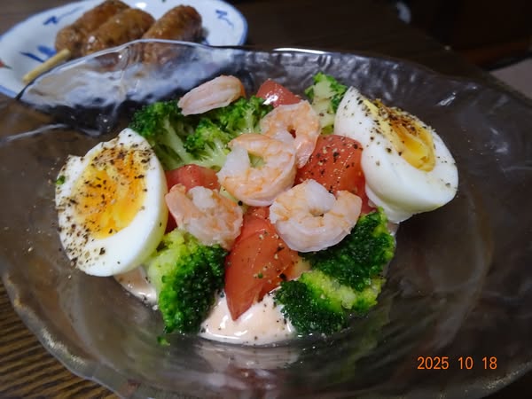 ・トマト ブロッコリー ゆで卵 小海老のサラダ |