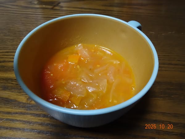 ・残ったズッパスープにトマトを加えました |
