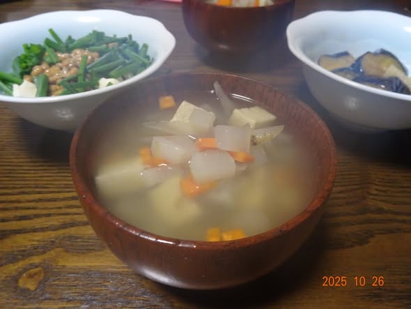 | ・けんちん汁 風 大根 人参 牛蒡 高野豆腐 |