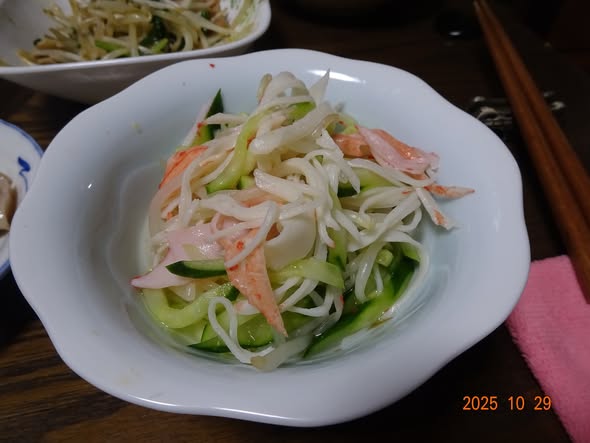 | ・もやし キュウリ カニカマの酢の物 |