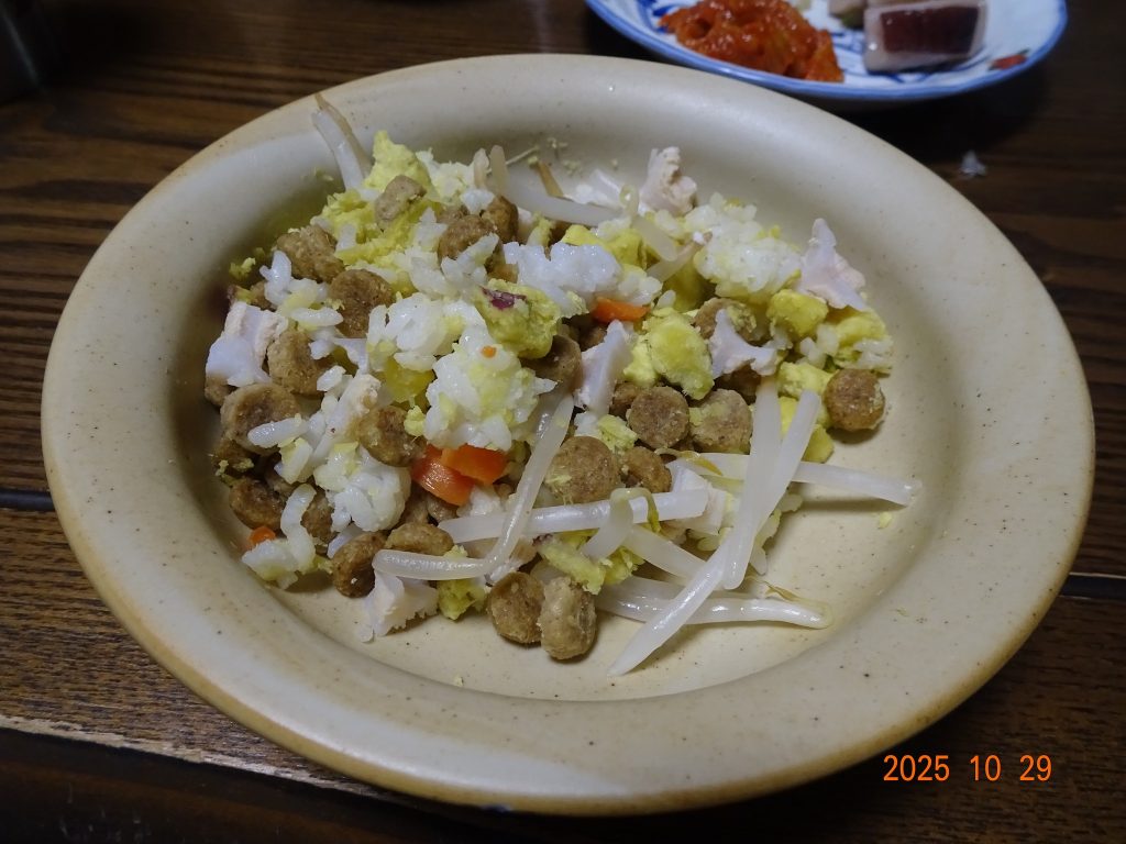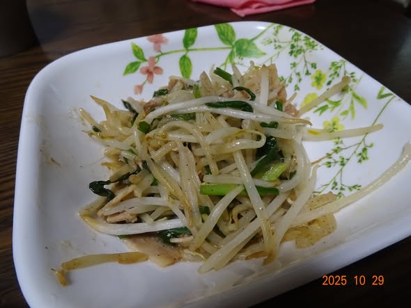 | ・もやし 韮 豚肉の牡蠣油炒め |