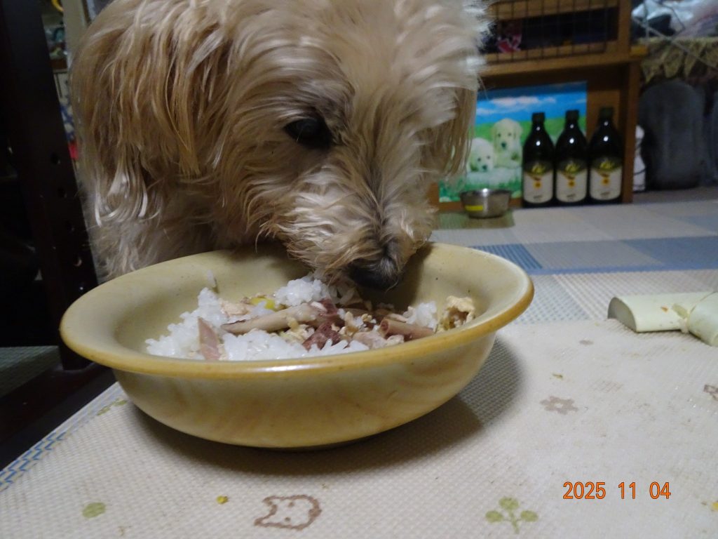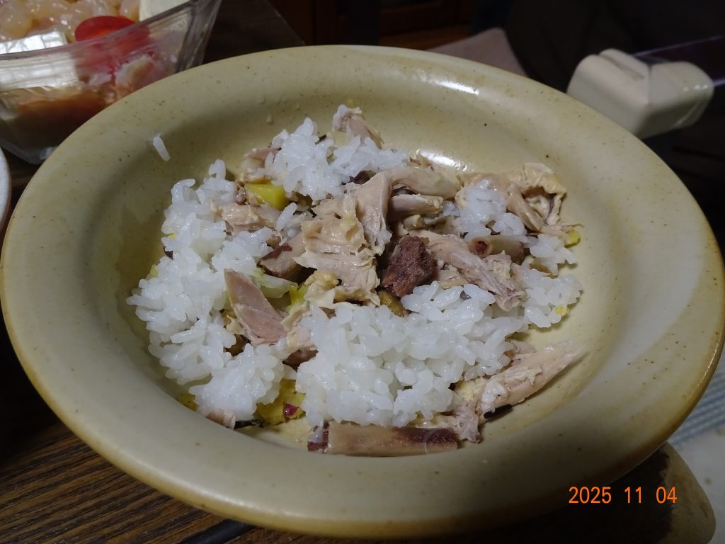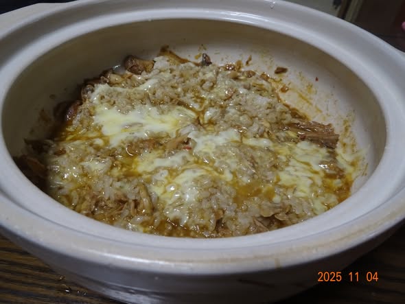 | ・昨日のサムゲタンのチキンで カレーチーズおじや |