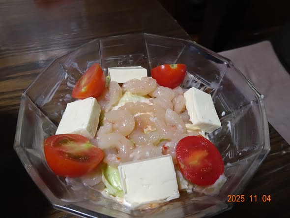 | ・レタス チーズ ミニトマト 甘えびの塩辛 サラダ |