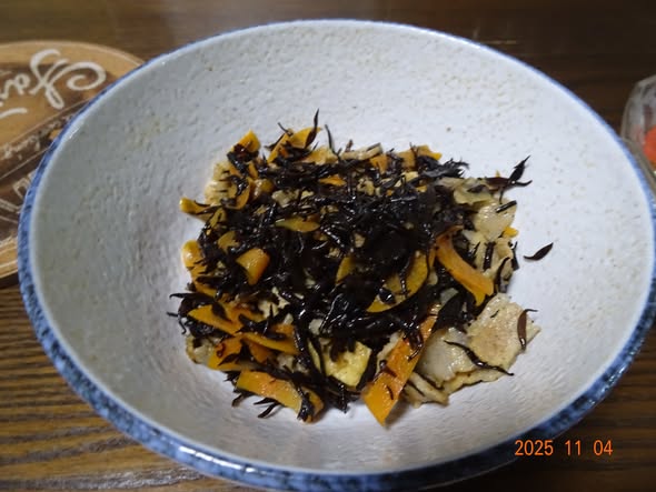| ・ヒジキ煮 豚肉 人参 油揚げ |