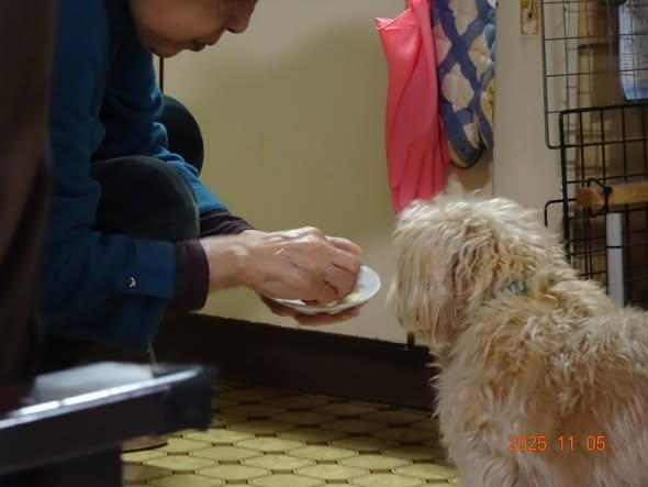 | ご褒美をあげました 食べません 心配 ( ノД`) |