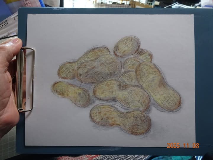 【 て・な・ぐ・さ・み 】 落花生 🥜を描いてみましたB5画用紙 水溶色鉛筆大体KAMIさんの批評 講評を求めますKAMIさんは構図にこだわります『大きすぎる 里芋みたい』 Σ(゚Д゚)確かに小さくもう一枚描くつもりです Σ(´∀`;) 投稿者: admin 1949年12月に熊本の天草に生まれ、現在は千葉県船橋市にKAMIさんと愛犬MASHA(2010.5.5生)と居住。2013年6月に完全リタイア 以来 HIMA人 FREEマン。 アラウンド7(にそろそろリーチ)老い朽ちる日を見据えて KAMIさんと 主役のマシャとともに過ごす日々を、徒然 書き留めておく。 2018.10.14記 admin のすべての投稿を表示