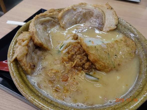 | 9時前 喜多方ラーメン ベーコン 小松菜 半熟卵 |