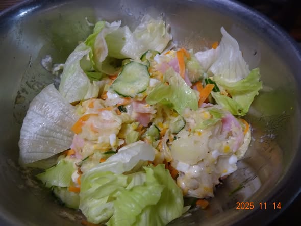 | ・ポテサラ ポテト キュウリ 人参 キャベツ 玉葱 レタス |