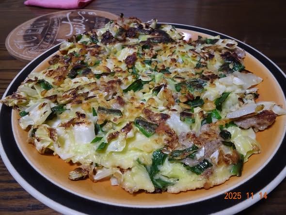| ・買ってきた牛肉入りの大判お好み焼き |