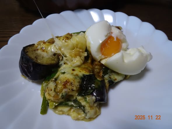 | 茄子 ほうれん草 チーズをのせ オーブンで焼きました |