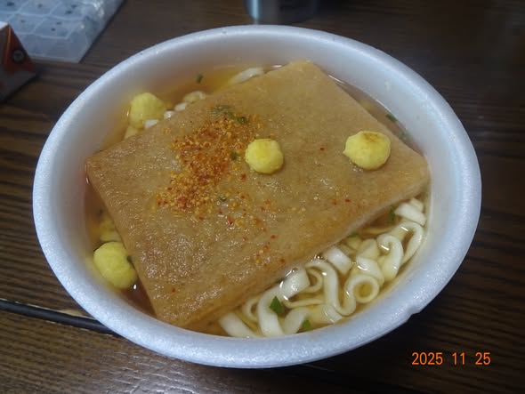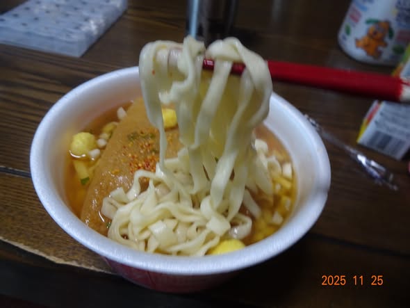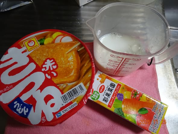 10時前 赤いきつね  牛乳と野菜ジュース