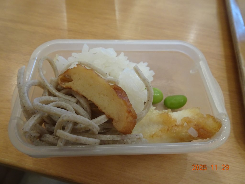 | マシャみやは蕎麦 飯 穴子 枝豆です |