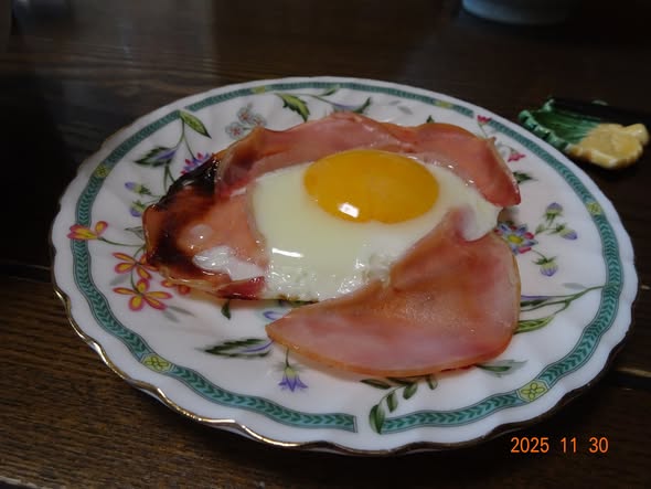 | ハムエッグ 牛乳 ほうれん草 小松菜 バナナのスムージ― |