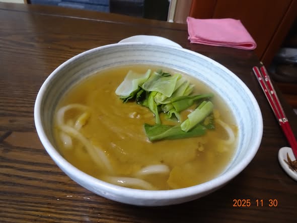 | カレーうどん 余りもののカレーを牛乳で伸ばし |