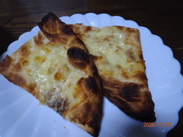| ・持ち帰ったナン 改 チーズをのせ焼きました |