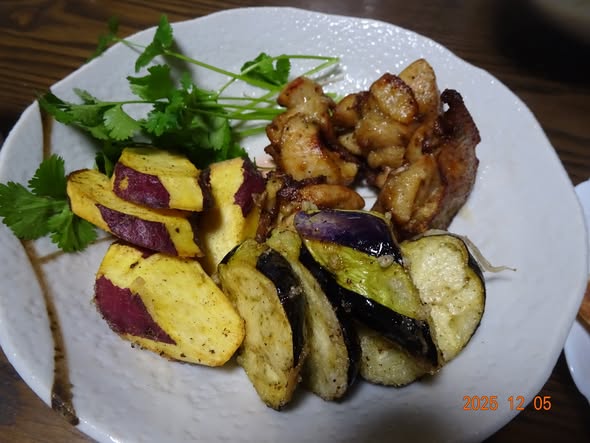 | ・鶏のから揚げ 茄子の素揚げ 薩摩芋の素揚げ |
