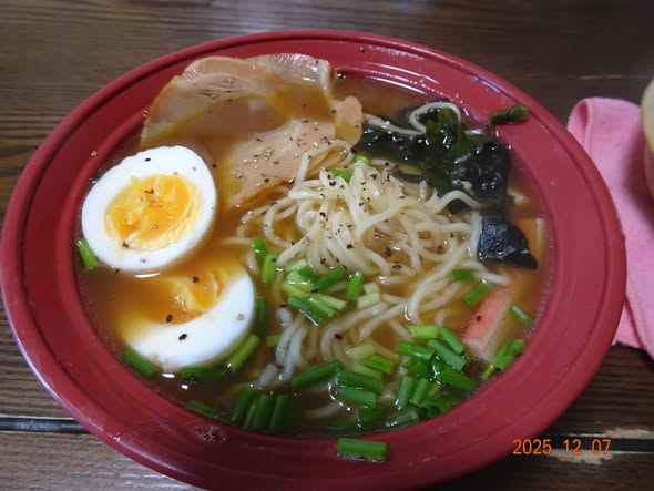 | 焼き豚 カニカマ ゆで卵 若芽 葱をトッピング |