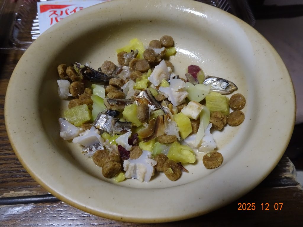 【 夕めし 】 17時過ぎにKAMIさん帰宅17時半KAMIさんが買ってきたステーキ弁当 牡蠣フライ ポテトサラダHOKA弁です豆腐とわかめの味噌汁を用意しましたスーパードライ🍺 “昔女子”会の話を聞きながらマシャは朝の分プラスαを完食しました 豪華です みそ汁の出汁をとった煮干しが入ってます 投稿者: admin 1949年12月に熊本の天草に生まれ、現在は千葉県船橋市にKAMIさんと愛犬MASHA(2010.5.5生)と居住。2013年6月に完全リタイア 以来 HIMA人 FREEマン。 アラウンド7(にそろそろリーチ)老い朽ちる日を見据えて KAMIさんと 主役のマシャとともに過ごす日々を、徒然 書き留めておく。 2018.10.14記 admin のすべての投稿を表示