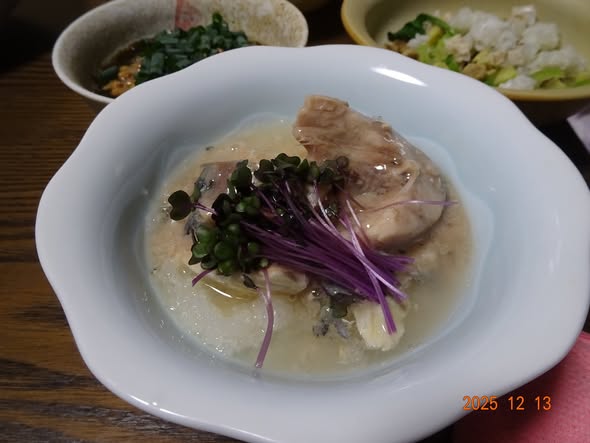 | ・生鯖 オンザ大根おろし レッドキャベツのスプラウト |