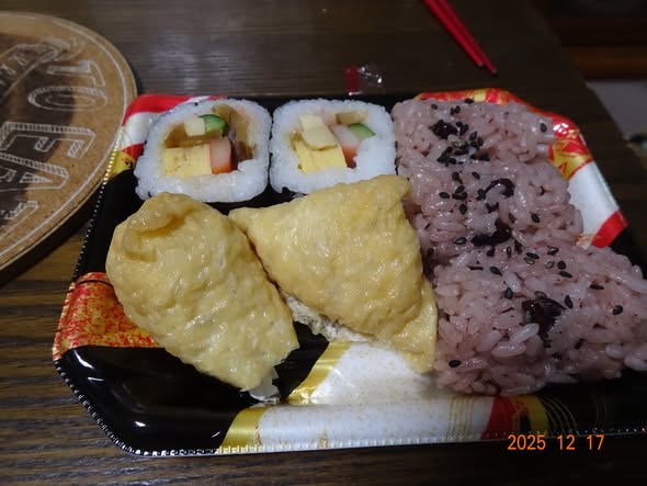 | ・買ってきた 稲荷寿司 巻き寿司 赤飯 |