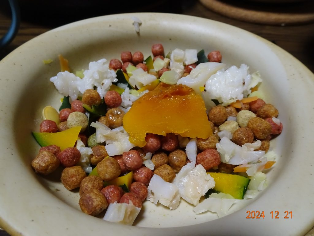 | 豚肉 人参 もやし 白菜 コーン 若芽 ピーマン |