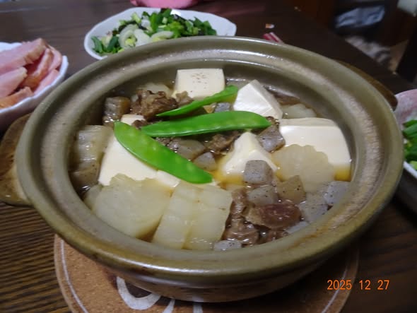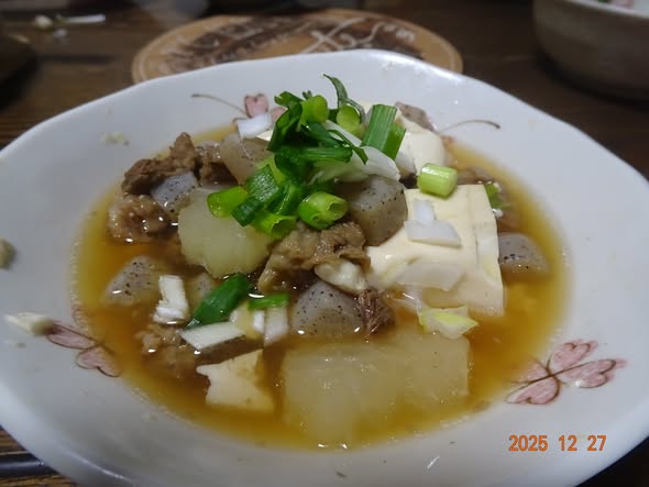 | ・牛筋の残りで煮込み豆腐 大根を追加 |