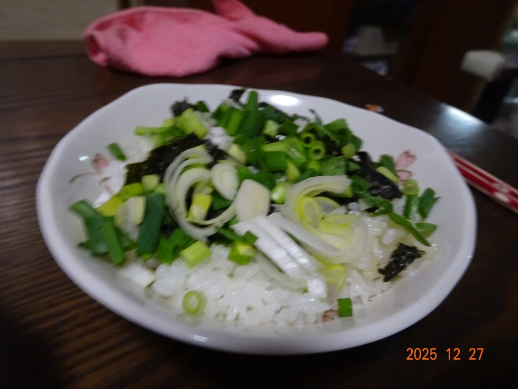 | ・焼き肉屋風メシ 白米 海苔 ごま油 葱 |