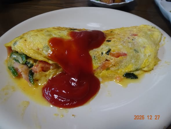 | ・オムレツ ・鰤の照り焼き ・海苔の佃煮 ・ふりかけ ・梅干し |