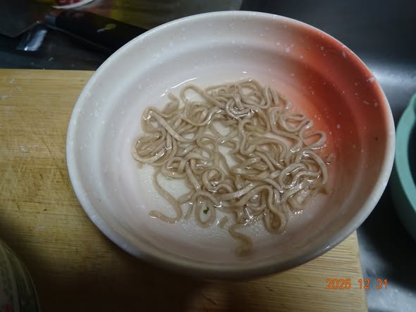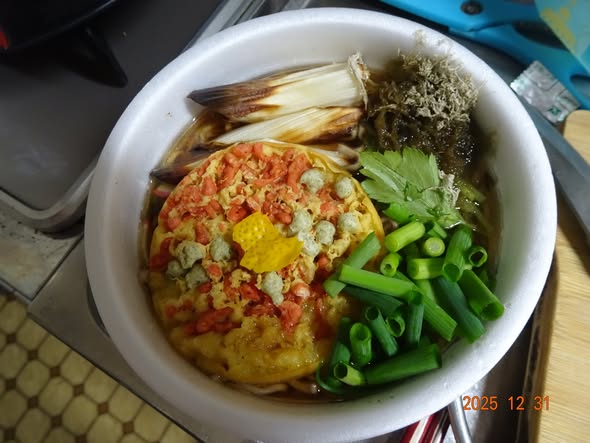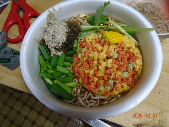 10時過ぎ  経済的年越し蕎麦  ベースは緑です