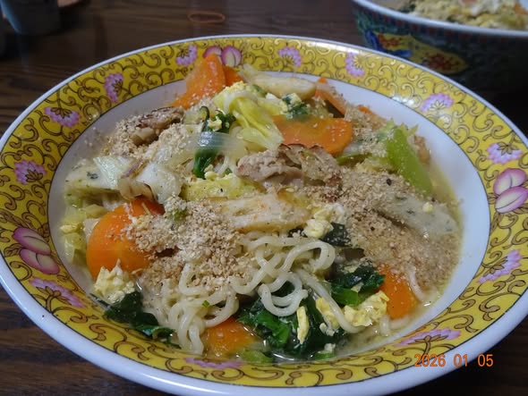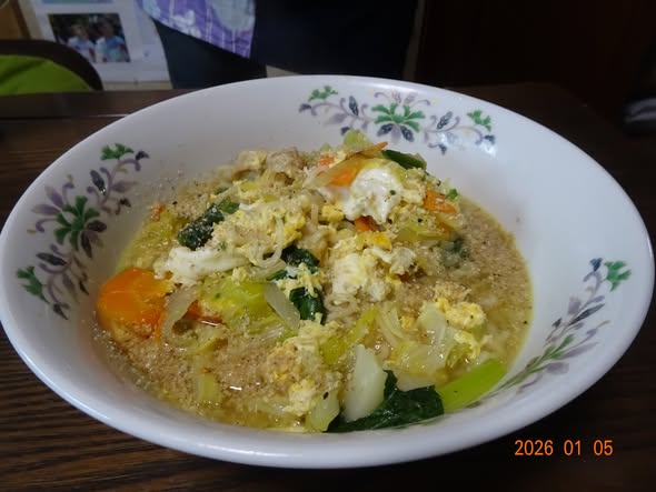 | 豚肉 キャベツ 玉葱 人参 小松菜 ニラ 薩摩揚げ |