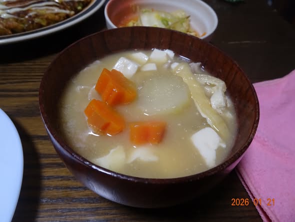 | ・豚汁 大根 人参 葱 豆腐 油揚げ 豚肉 大蒜 |