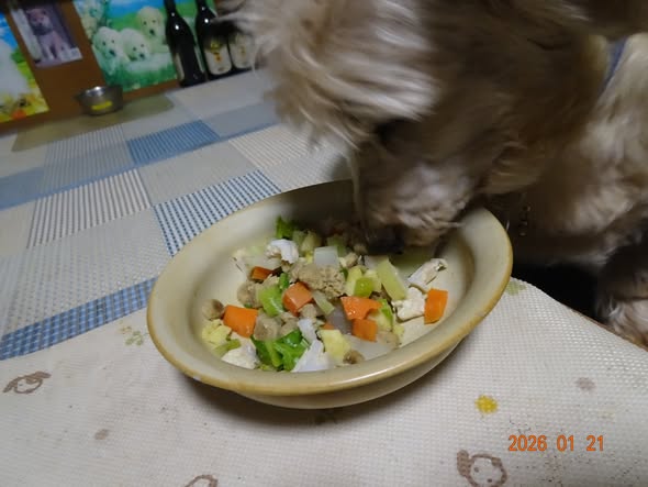 | マシャは朝の残り +αを完食です |