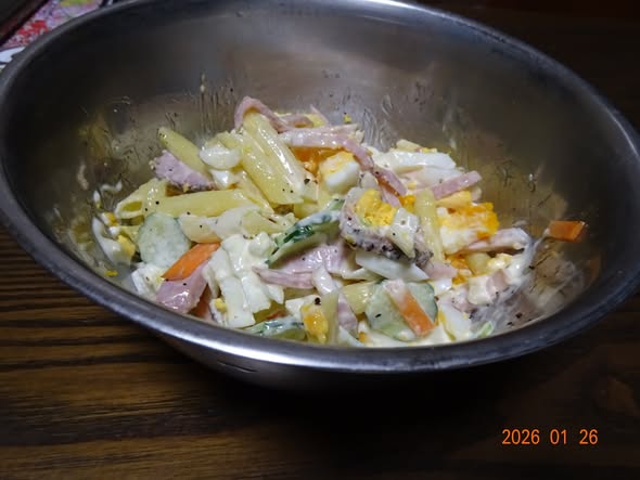 | マカロニ セロリ キュウリ 人参 ゆで卵 ハム |