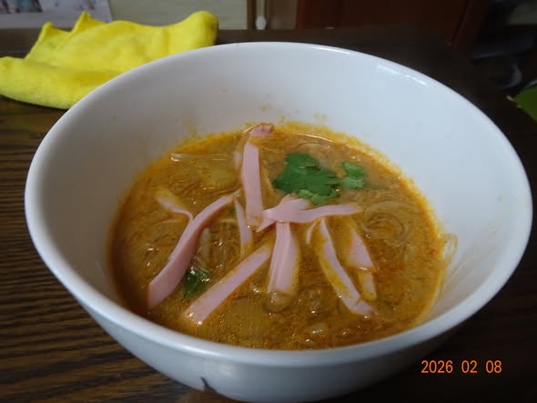 | ・昨日の辛いスープに 追い春雨 ロースハム |