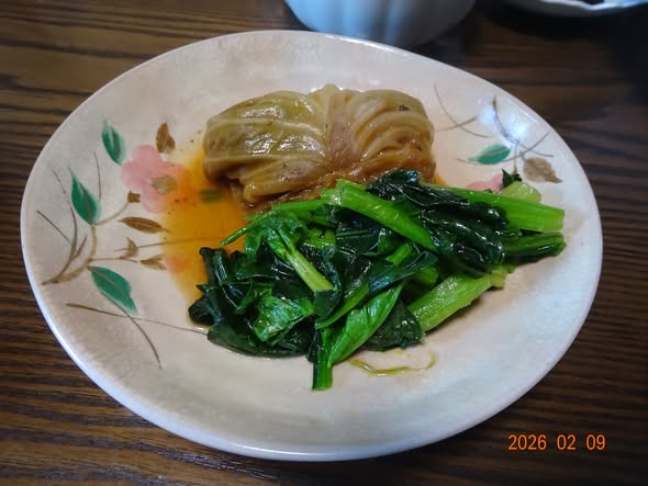 | ・残り物 ロールキャベツ ほうれん草 豆腐 アオサのみそ汁 |