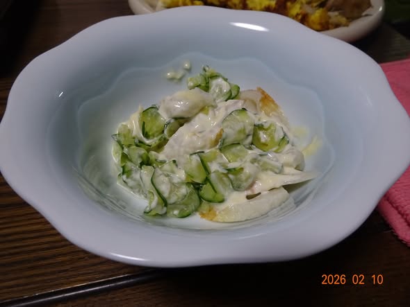 ・胡瓜と竹輪のマヨ和え  ・スナップエンドウ