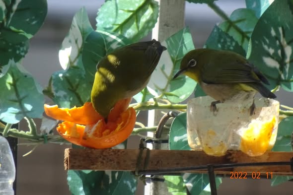 | 朝から外道が 花を啄み困ります 餌はあげてません |