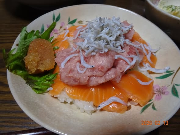 | ・海鮮丼 冷凍の 鮪剥き身 サーモン しらす 辛子明太 |
