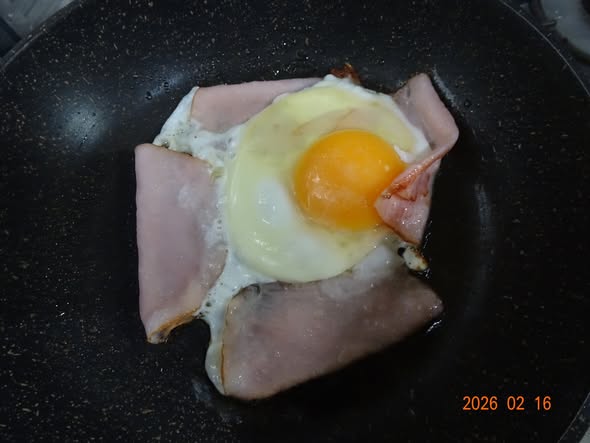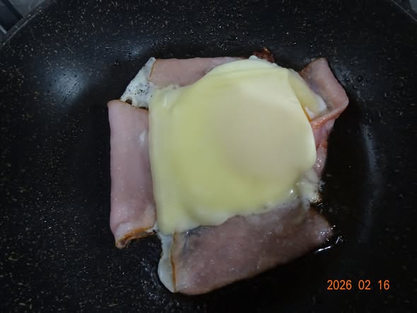 | ハムエッグに チーズをのせました 野菜ジュース |