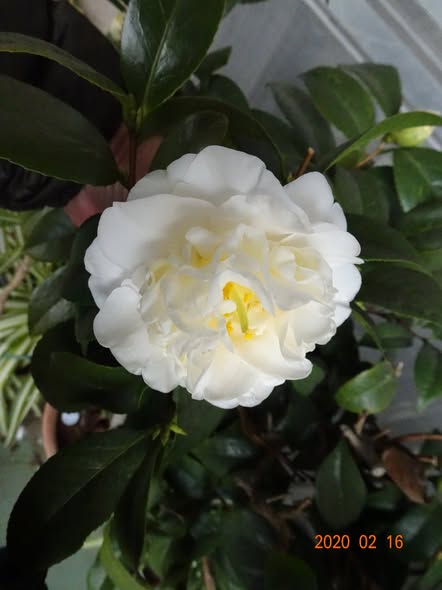 | ☆年6前 ベランダの白八重椿 咲く |