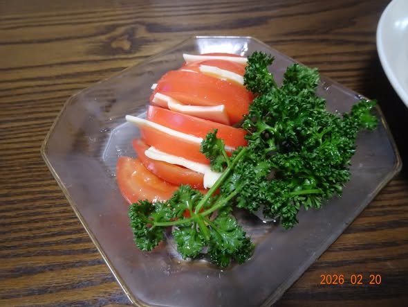 | ・トマトのチーズはさみ オリーブオイルかけ |