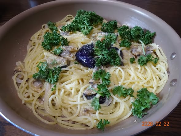 | ニンニク 冷凍アサリのむき身 揚げ茄子 |