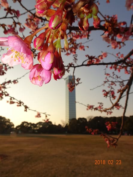| 晴れ 夜半に春一番が吹いたそうです 温い |