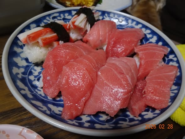 | 買ってきた中トロ鮪で 寿司を握りました |