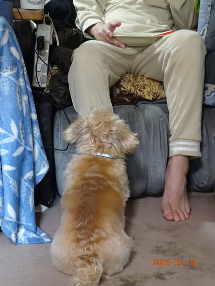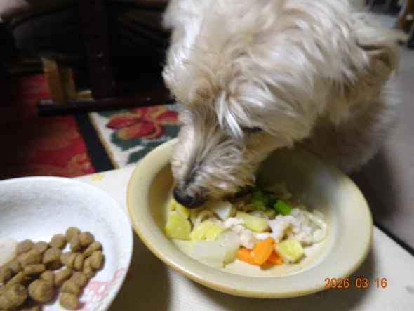 | マシャは、昨晩遅くに腹が減ったのでしょうかドッグフードを食べました |